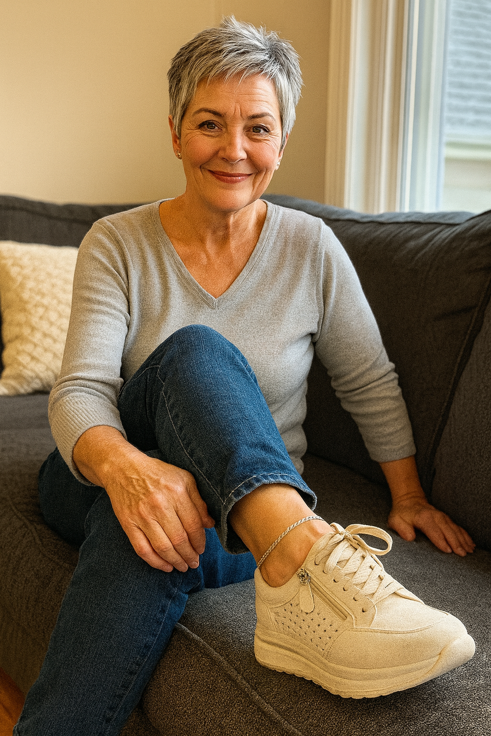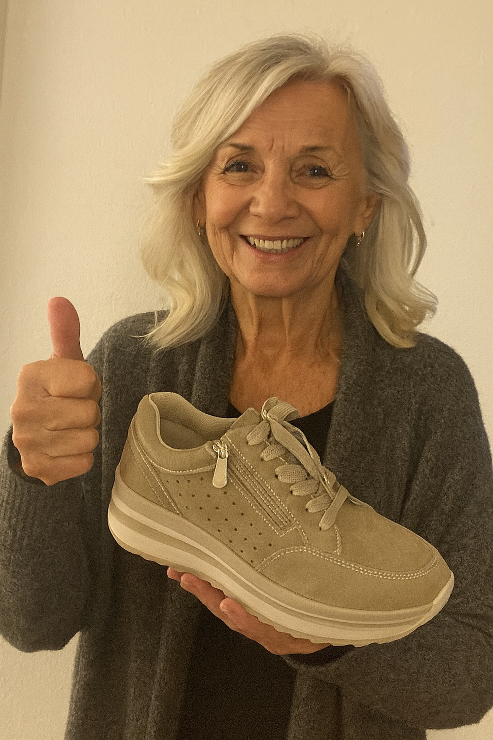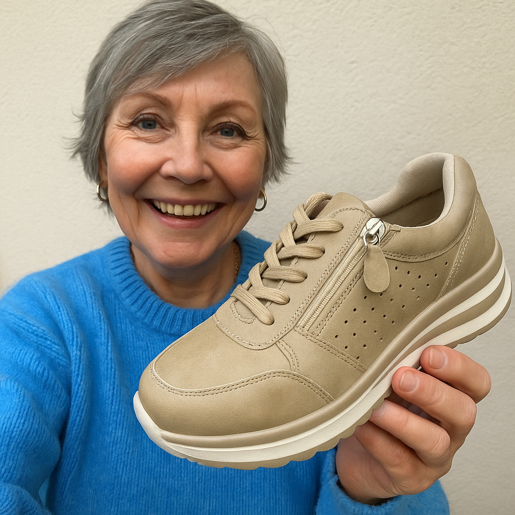 Door de verkeerde stand kreeg ik vaak lage-rugpijn. Deze schoenen corrigeren subtiel en dat merk ik direct. Ik voel me veel lichter wanneer ik loop.